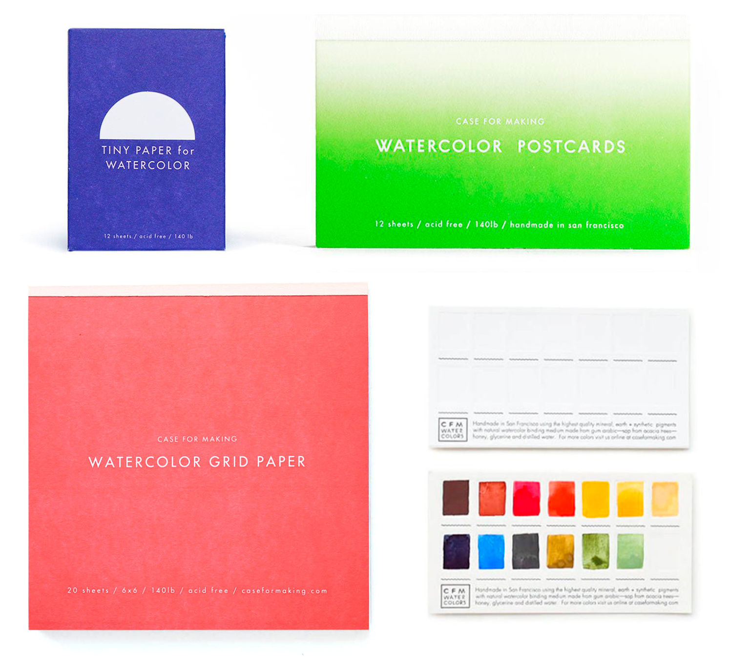 Development of custom letterpress-printed paper goods for Case for Making, a handmade watercolor shop in San Francisco.